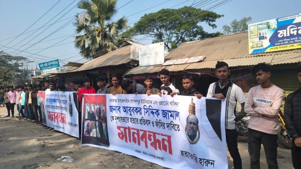 জাতীয় নিশান প্রতিবেদক: নোয়াখালী বেগমগঞ্জ উপজেলায় জমি সংক্রান্ত বিরোধের জেরে আপন ছোট ভাইয়ের দায়ের কোপে বড় ভাই নিহত হওয়ার ঘটনায় গ্রেপ্তার আসামি হারুনুর রশিদের সর্বোচ্চ শাস্তির দাবিতে মানববন্ধন ও বিক্ষোভ